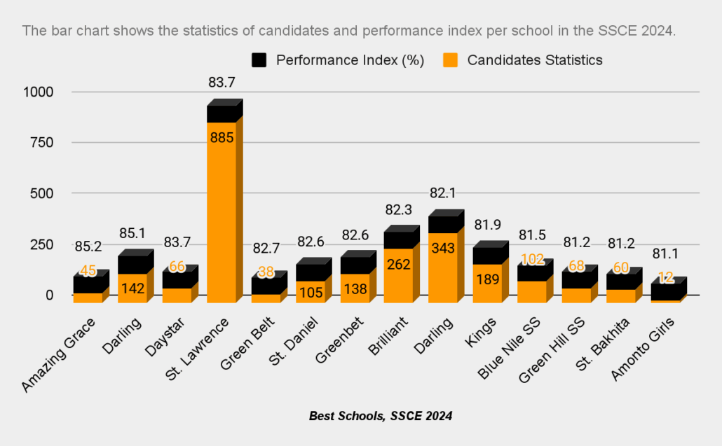 In terms of school performance, 14 schools performed well in the 2024 exams, where Central Equatoria State led with 10 schools, followed by Jonglei State, 3 schools, and Equatoria State, 1 school.